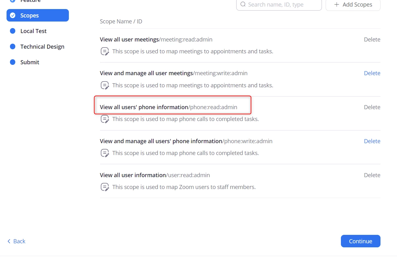 App is properly set to have Scopes: phone:read:admin