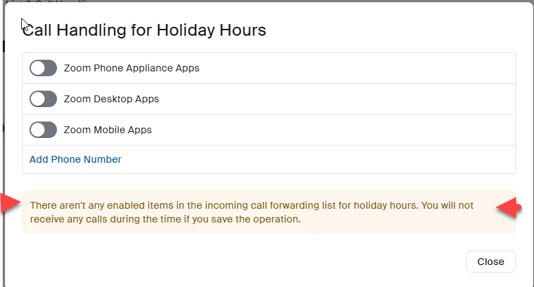 An alternative to Do Not Disturb is to set up agent’s paid time off (PTO) as a holiday period in holiday hours.