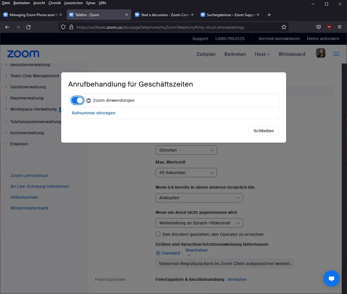 In den Einstellungen zu Zoom-Phone über das WebInerface sollte sich bei den Einstellungen zur Anrufbehandlung bei den Geschäftszeiten eigentlich einstellen lassen, welche Geräte/Programmversionen klingeln sollen, wenn ein Anruf eingeht.