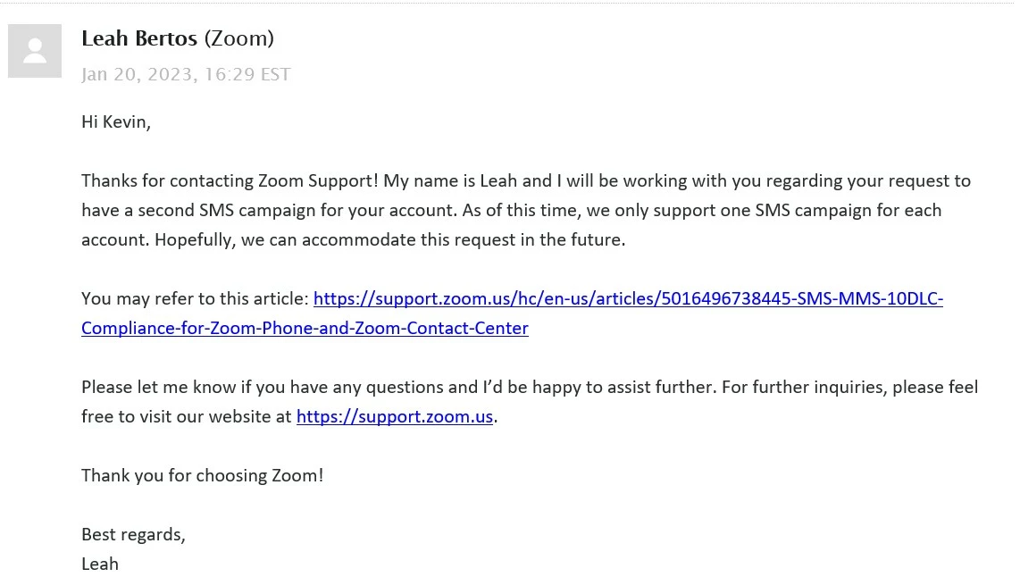 Greetings. Currently, I'm only allowed to create one (1) SMS Campaign. What are options/ideas to have a second SMS Campaign? Could I create a new Business Account specific to a Department so I can have a 'second' SMS Campaign? Thoughts??