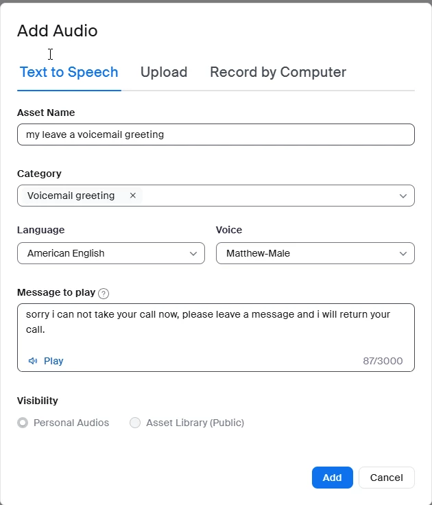 My customized personal greeting is not playing when I am not able to answer a Zoom phone call.