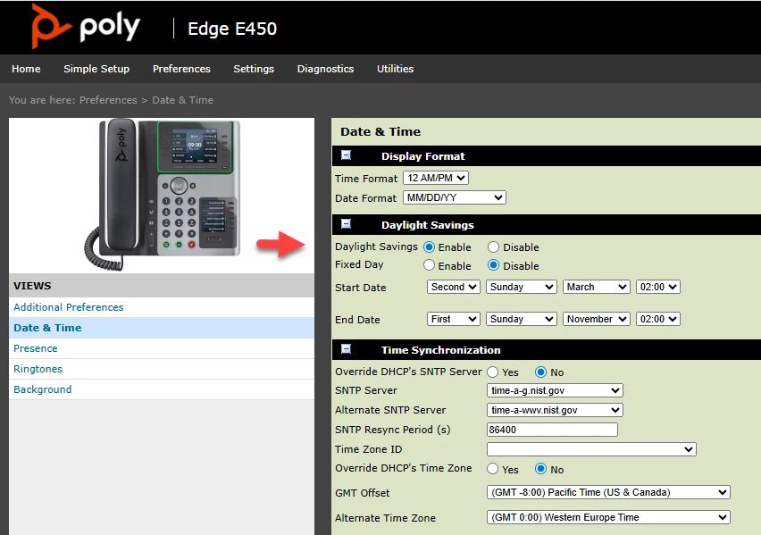 Our Mitel 6940 phones have not switched over to daylight savings time. It worked fine in the fall but not this time. I do not want to go into each device to change the time. Is there a provisioning command to do this? The time zone is assigned to each user and I do not see an option to change it for devices. I have added in an NTP server and a secondary one. I did a resync account and the provisioning date changed but the phone did not reboot. I wanted to open a ticket to find out why it failed but I also cannot find where I can open a ticket. It only shows a virtual agent.