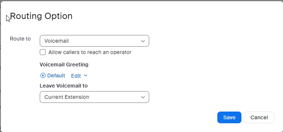 We are a self-storage facility operator and have all calls routed into a Zoom Call Queue. The calls are then routed to a user in our call center. After hours, or on weekends, we want all calls routed to this same user's voicemail box so he can return the calls the next day.