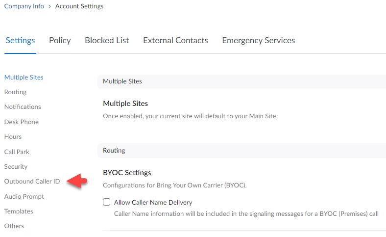 I'm trying to set Outbound Caller ID for our new Zoom Phone account.