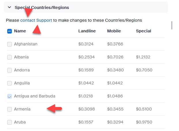 Unable to call - UAE, Armenia, Turkey