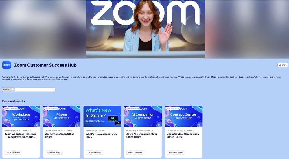 📆 October 29: Zoom Workplace: Admin & User Best Practices - Learn how to get the most out of Zoom Workplace—from Meetings and Team Chat to Zoom Phone, Mail, Whiteboard, and more.
