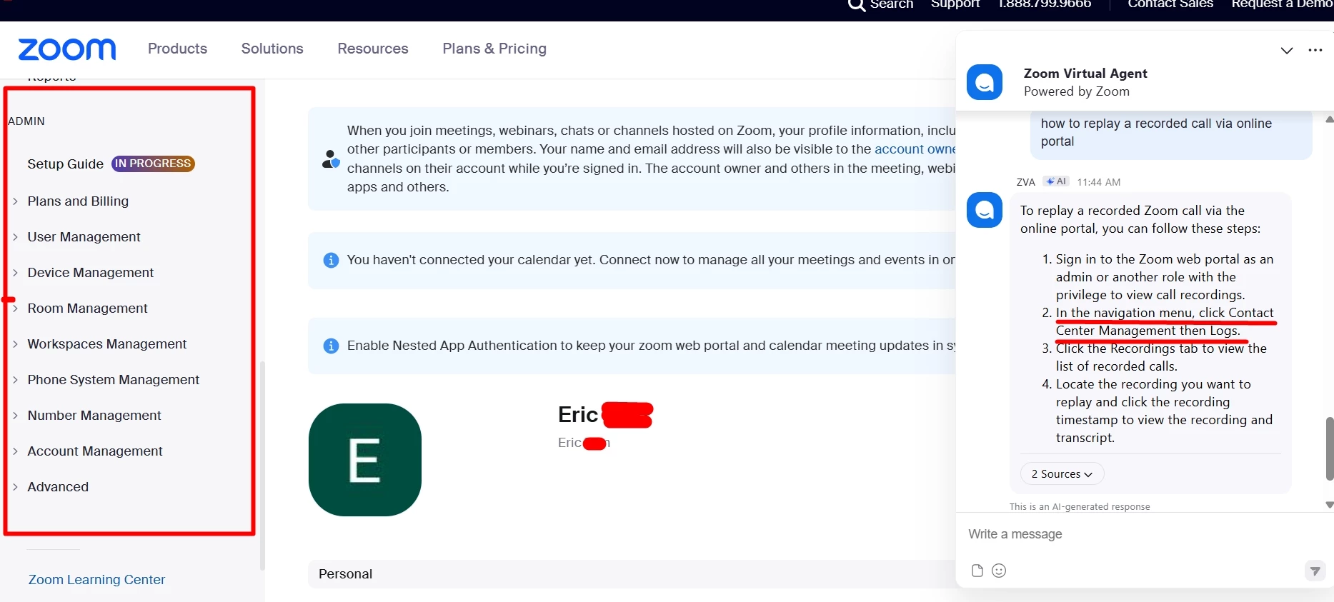 From your screenshot, it sems you might also have the Zoom Virtual Agent, and if you a ZVA Administrator, you should be able to see the Virtual Admin Management in the left menu as well.