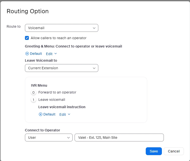 When using IVR, a common default message that comes up says that no one is available to take the call, please leave a voicemail for the operator.