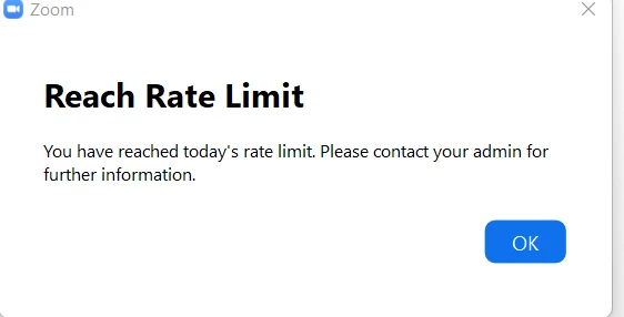 Good day.  In order to prevent system overloads and abuse of services, Zoom does impose rate limits.  You can review those limits and the process to request an increase to those limits using this link:
