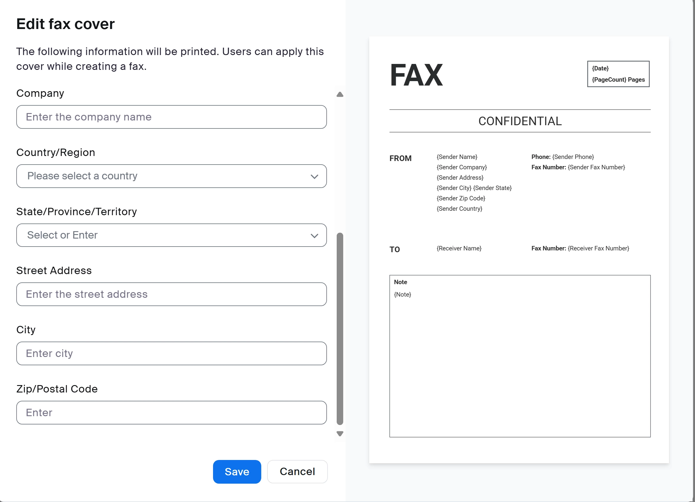 I just found zoom fax today and very happy about it. When setting up cover pages it looks like fields can be dynamic base on the sender's user record. However when we tested it only the sender name and fax number automatically populated along with the recipient fax number. Does the system support automatically populating sender company, sender address, and sender phone number? If so, where do we need to update user profile records?