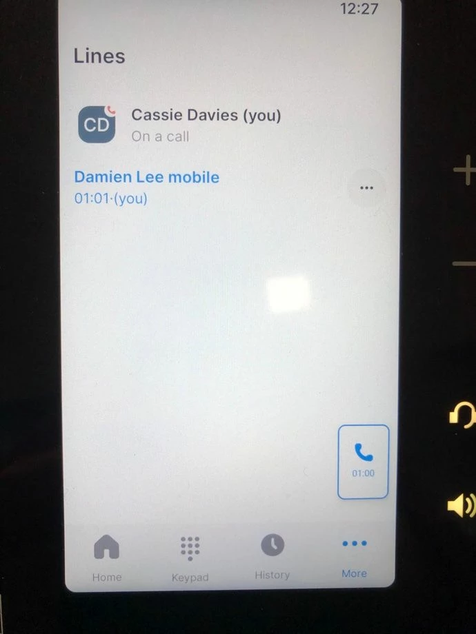 But if you go to the More->Lines you can see the phone number gets resolved to a contact name