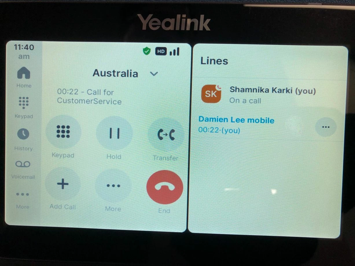 The Yealnk with its bigger screen which shows the Line screen beside it is a bit better, so after you answer the call it will display the name.