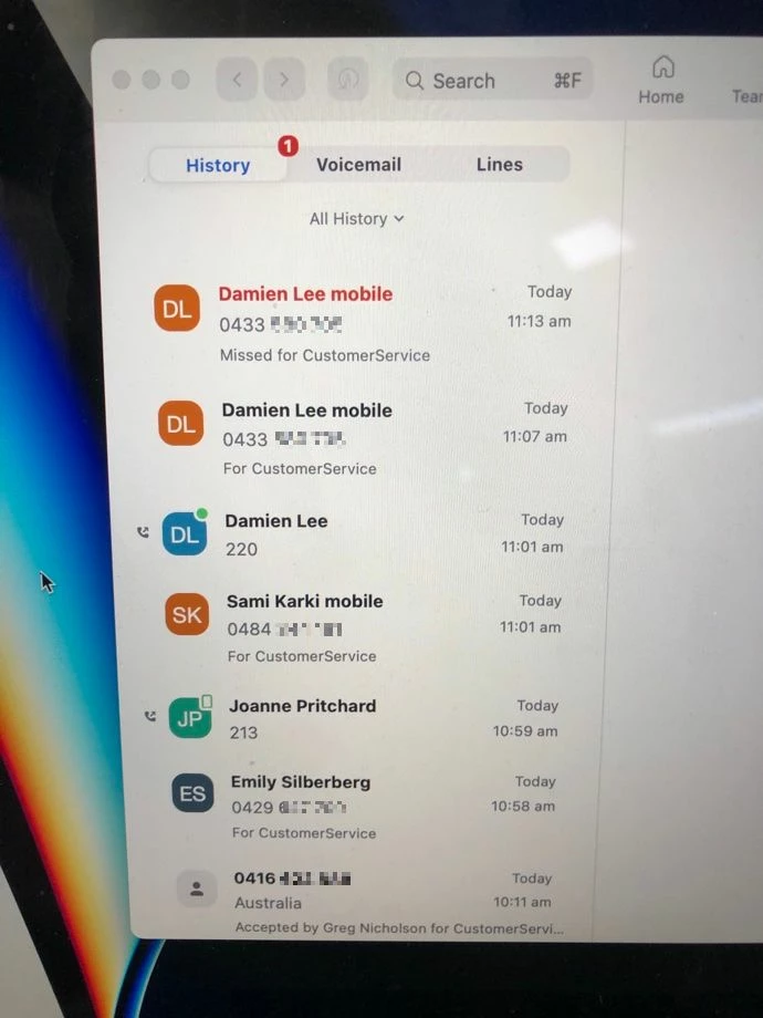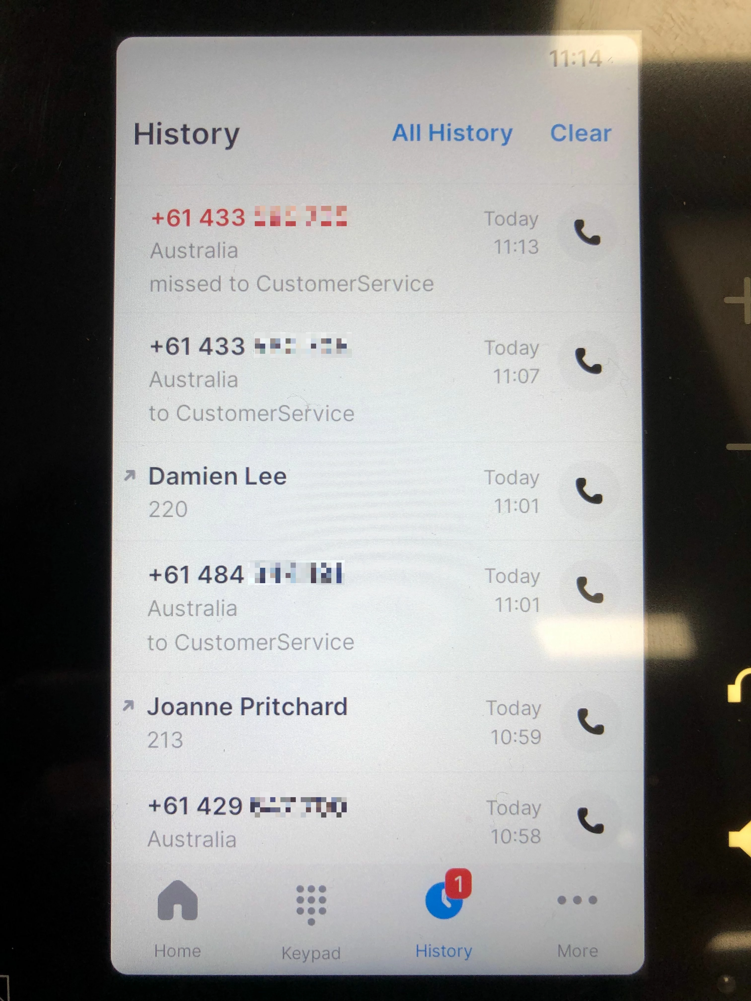 And the History Log doesn't show it as well, you have to press the number and then it will show the name of the caller, unlike the desktop client.