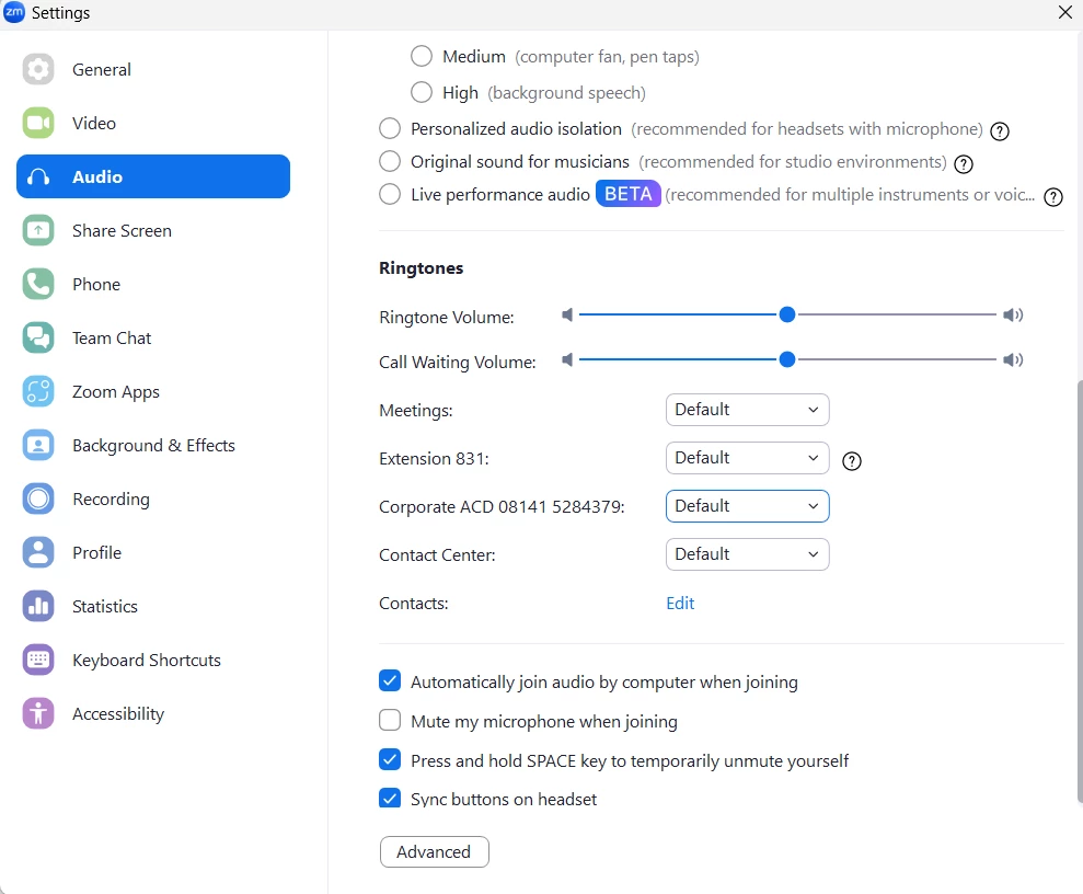 Zoom Phone extension ring tone
