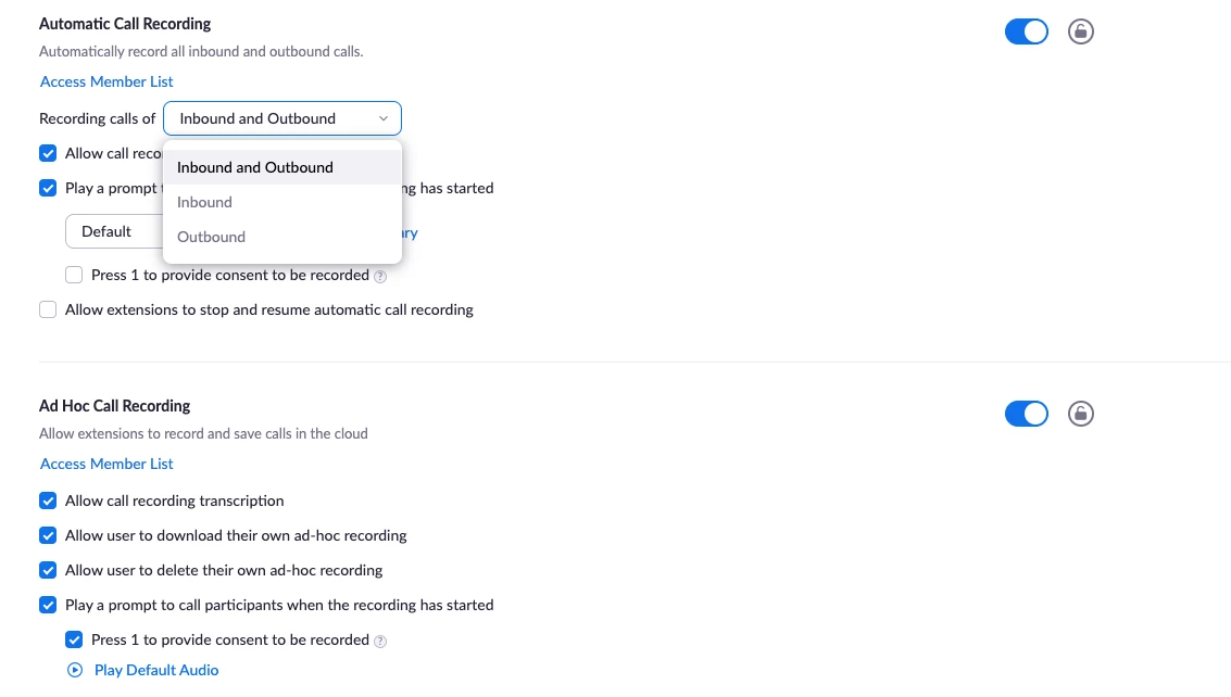 Zoom phone recording