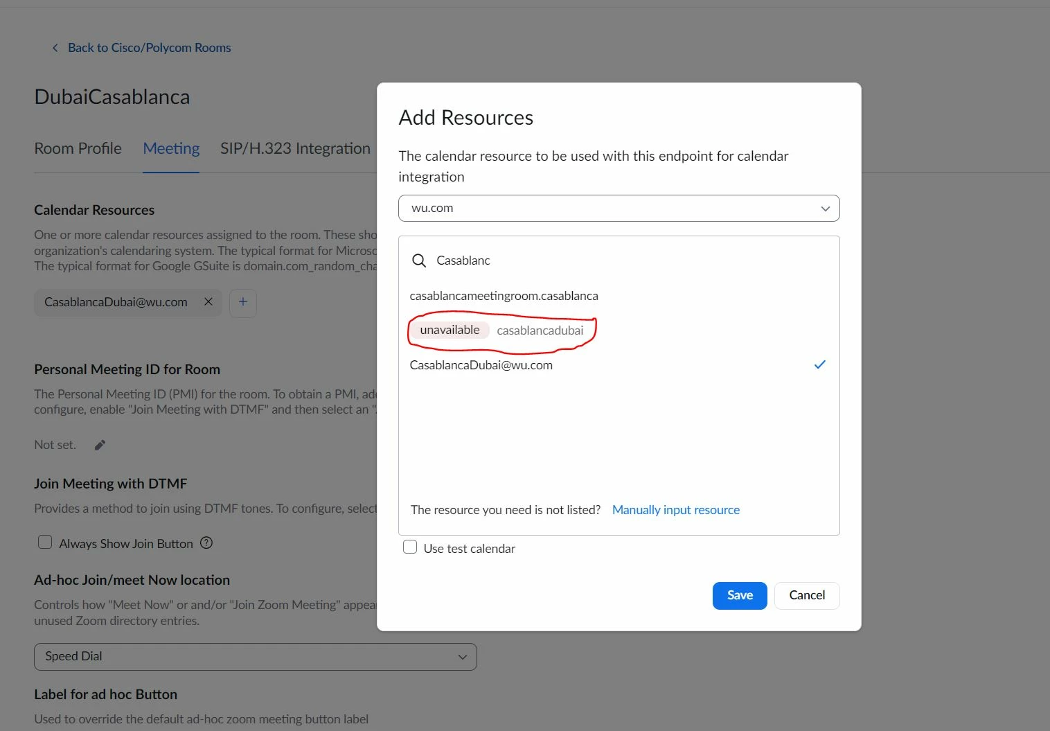 SSachinTodkar_WUNewcomerForum|Forum|3 years agoOctober 4, 2022QuestionCalendar is showing unavailable on zoom portal under calendar resources when assigning to zoom room.Forum|Forum|3 years agoOctober 4, 20221 reply0 viewsCalendar is showing unavailable on zoom portal under calendar resources when assigning to zoom room. Attached is the screenshot for reference where we can't assign calendar resource since its unavailable.