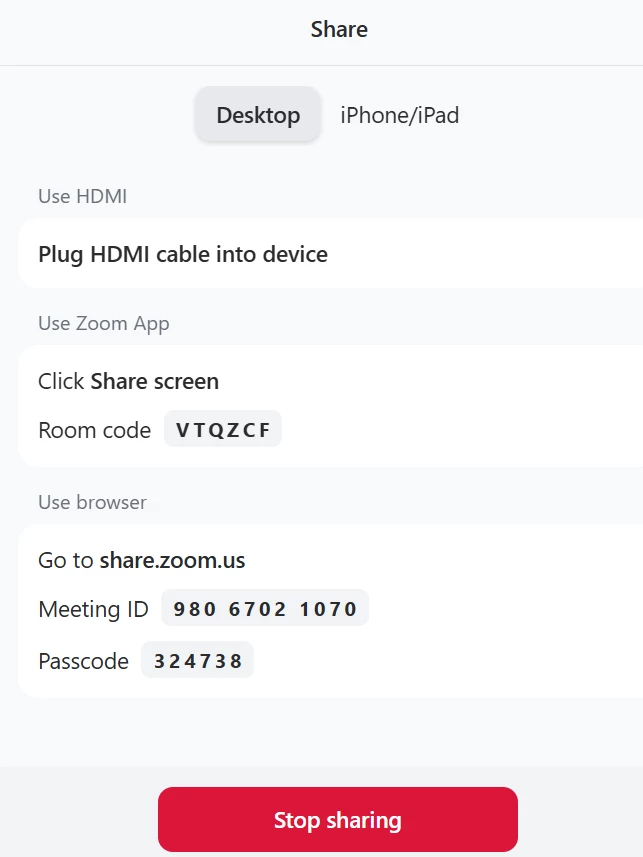 Here is what it looks like sharing outside of a meeting. There used to be the Camera option next to iPhone/iPad: