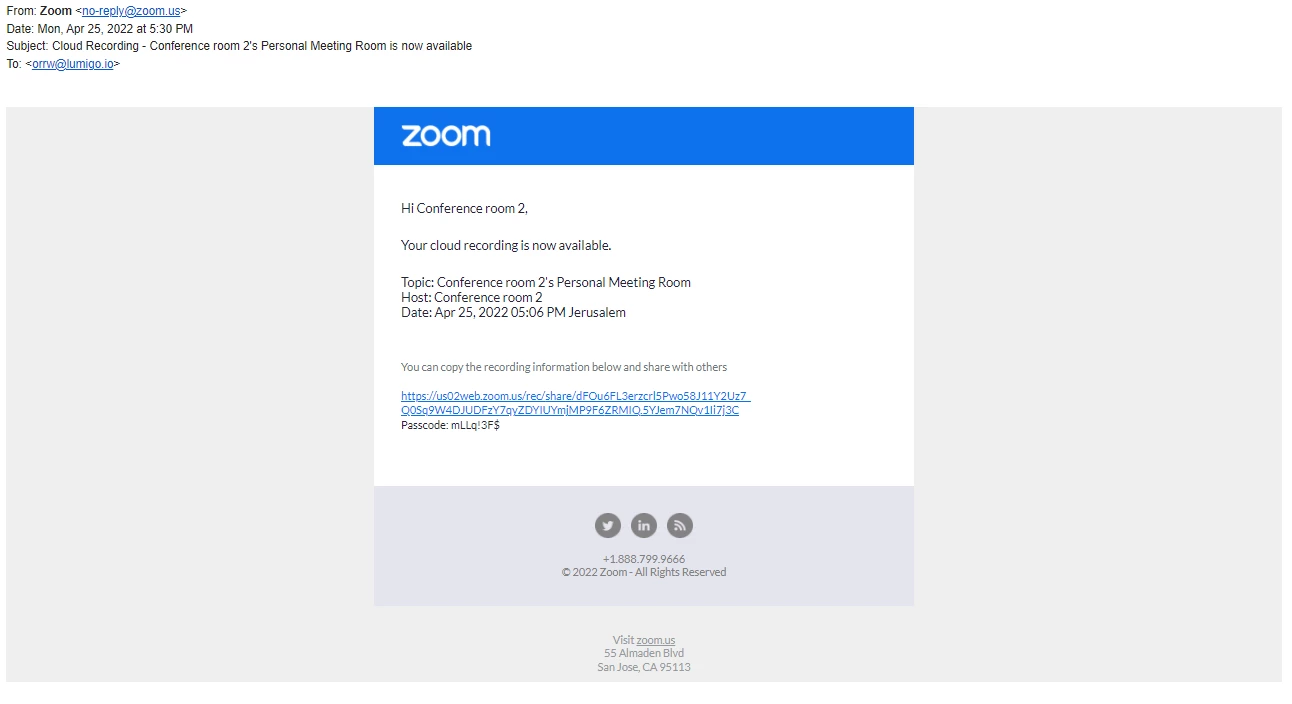 The zoom room was the host and when we finished it sent an email with the link to the recording but there is no option to download the recording.