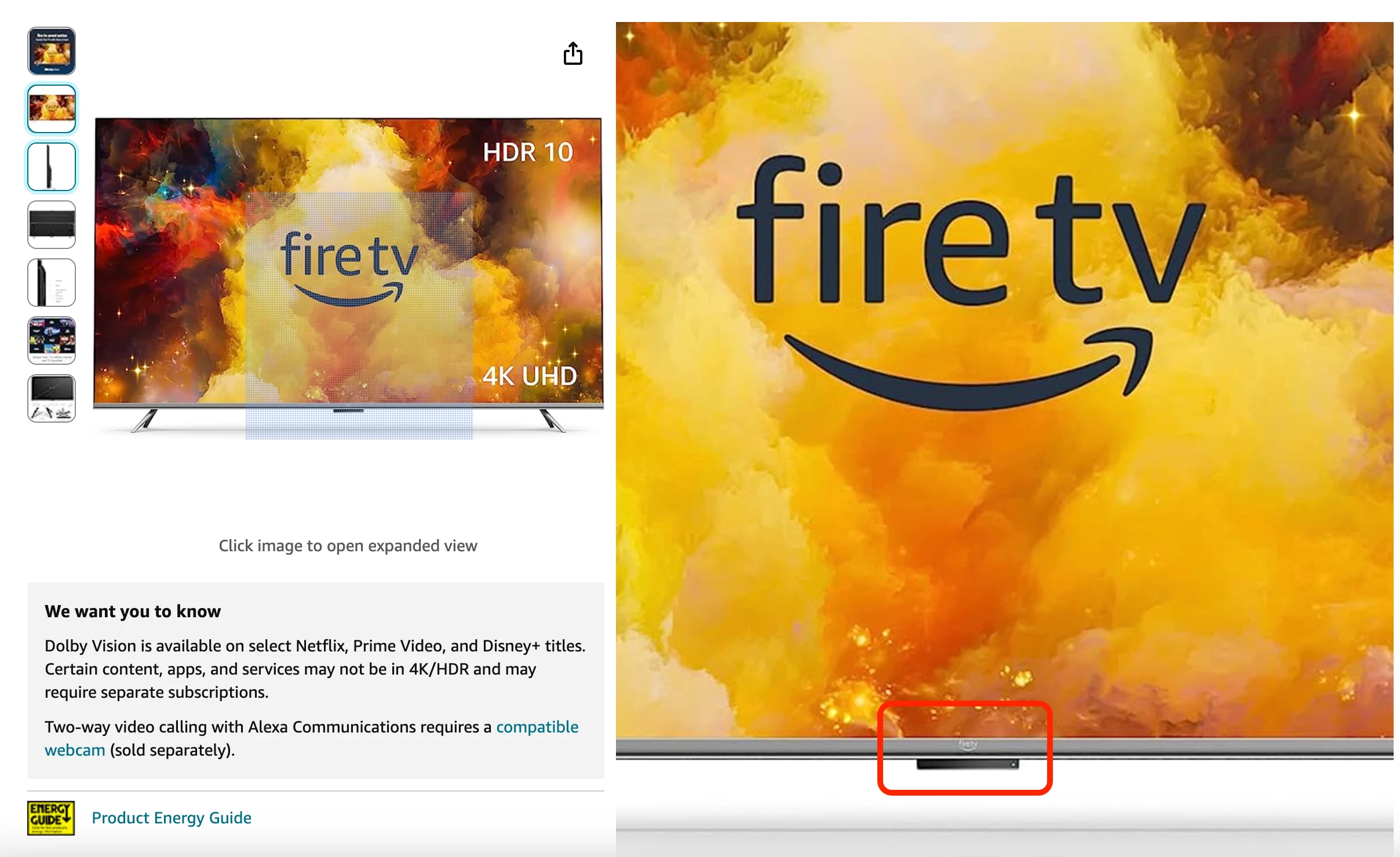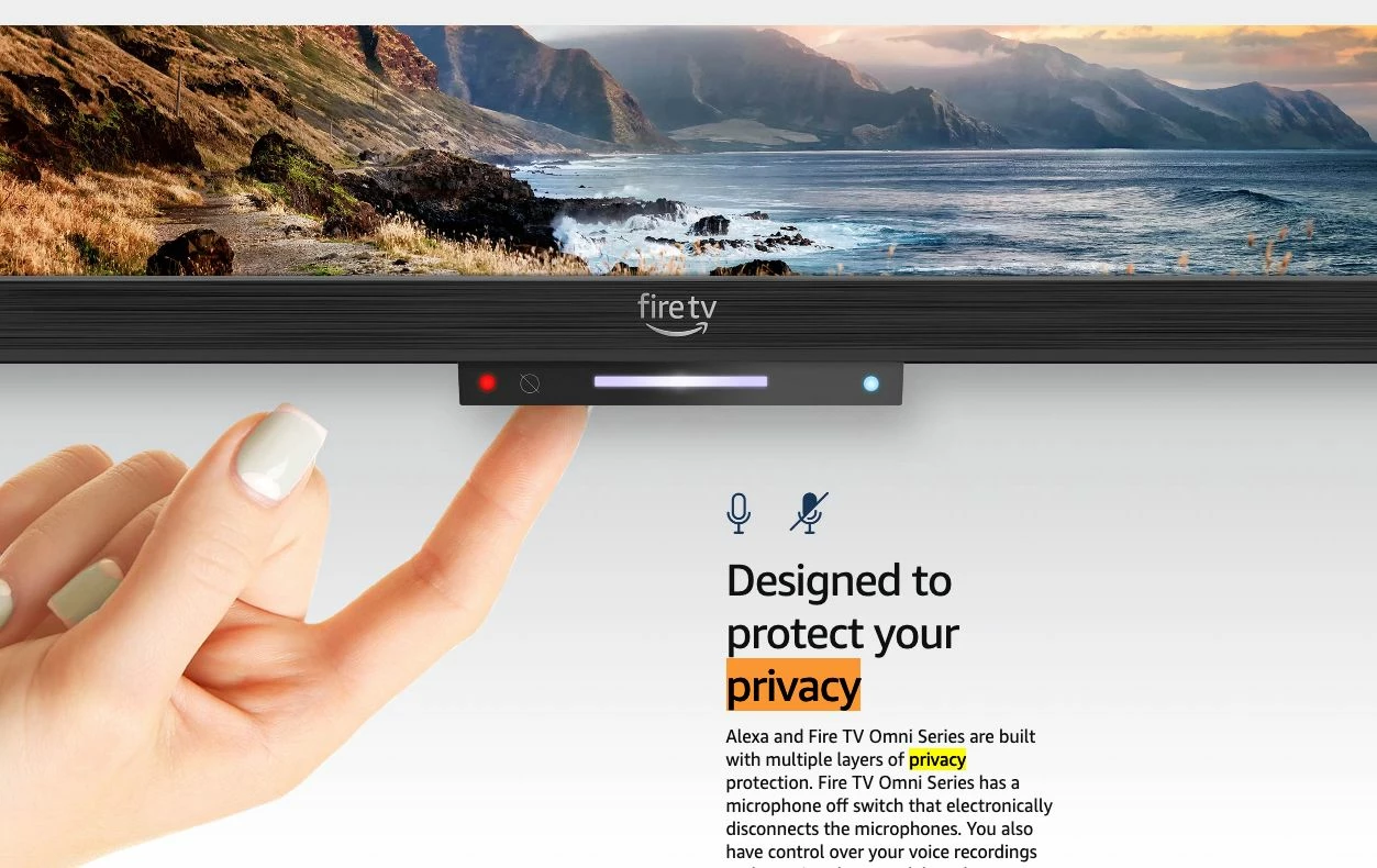 They said that the Amazon OMNI TV is in the same series as Amazon Fire TV. They also said that they have a privacy button at the bottom of the TV. Should be located around here based on the model number you've sent over:
