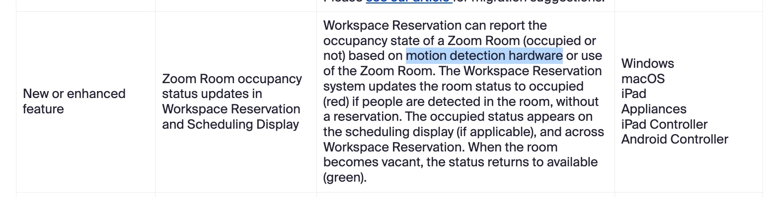 How does Zoom Room "Display room occupancy status" work?