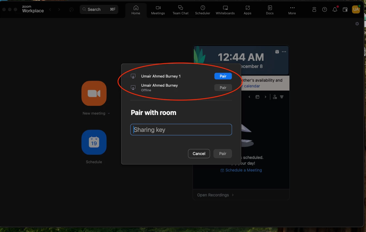 UUmairburneyPartnerForum|Forum|1 year agoDecember 7, 2024QuestionHow to delete extra Zoom Room showing in companion mode to pair withForum|Forum|1 year agoDecember 7, 20240 replies0 viewsHow to delete @zoomroom (using a personal device) which is not visible in room management but showing in companion mode to pair with.Attached is the screenshot for reference highlighted in red