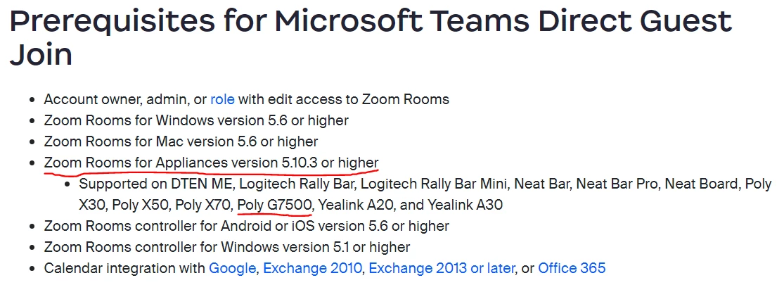 Microsoft Teams Direct Guest Join did not work with Poly G7500 via Zoom Room