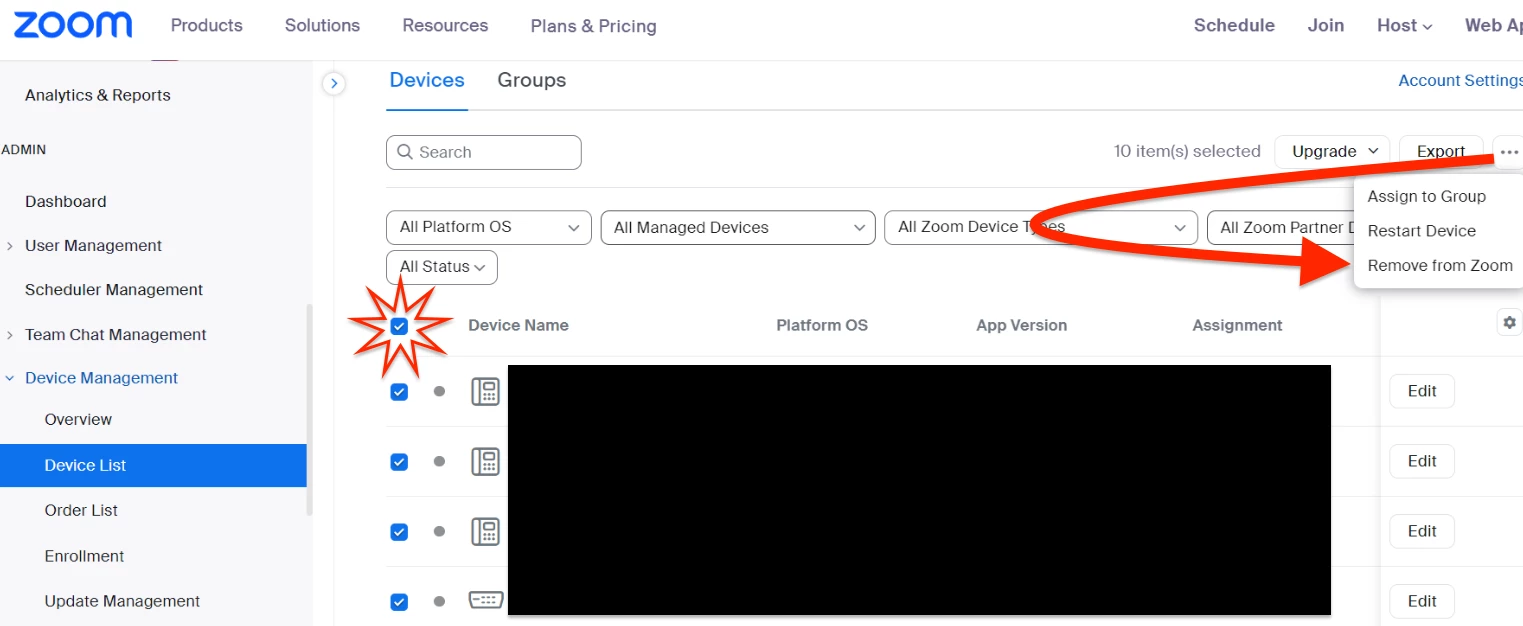 We are decommissioning our Zoom Rooms, and therefore want to remove the device that we have in our admin portal but I cannot see a way to do this. Can anyone help with this?