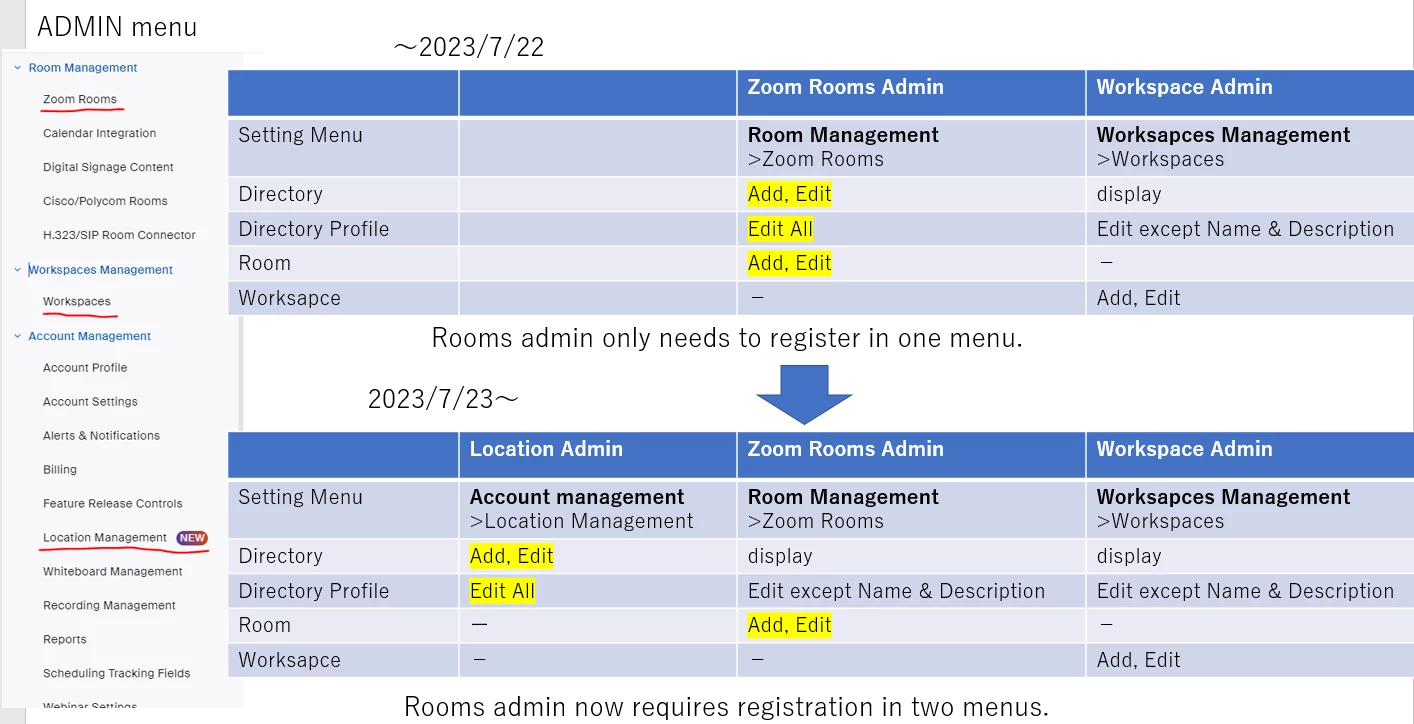 The new Location Management menu has caused some confusion in our account.