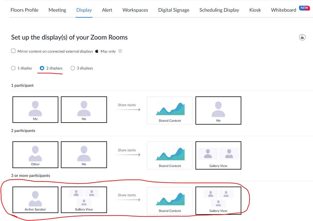 Problem: when screen sharing, the system performs as we want but when NOT screen sharing the system only shows gallery view on the front screen (we want it at the rear). How do i solve this? I realy don't want to add an extra computer in the system just to present gallery view on the back screen.
