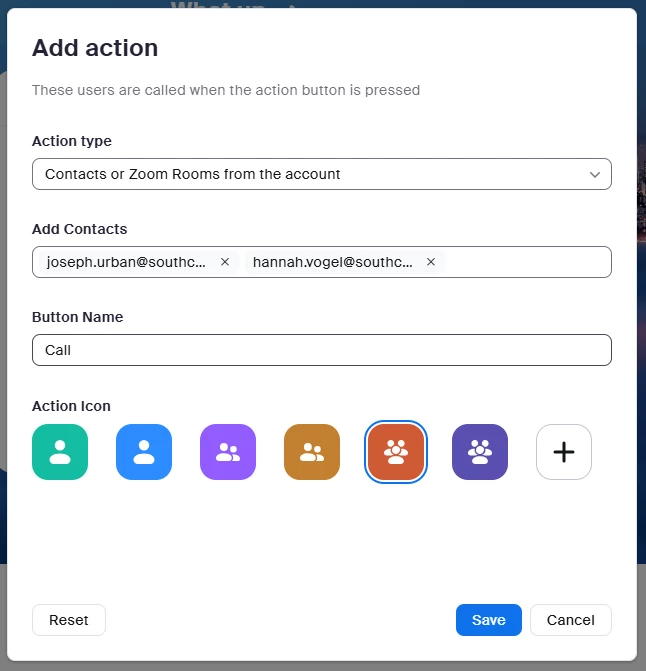 - What I am proposing is to change the "Action Type" and use "Zoom Phone" so it will allow you to use a "Zoom Call Queue" as the destination to properly ring in a Group of People as oppose to have 1 button per person (it doesn't rotated them), but for this to be enabled, you first need to create/assign a Zome Phone Extension to the Zoom Kiosk (Zoom Room).