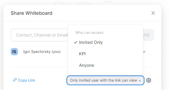 Recently I faced such a problem. When I try to share whiteboard (new), the system asked me who should have access: