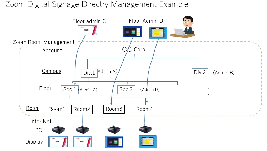Zoom Digital Signage assign "room/sign" to specific zoom user.