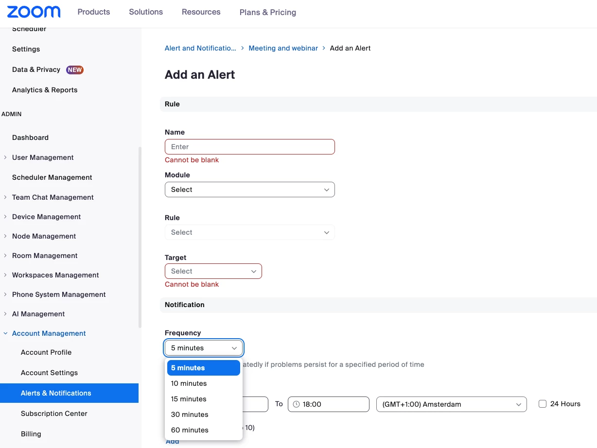 Can the default interval of 30 minutes for Zoom proactive Alerts can be further reduced to let's say 5 minutes ?