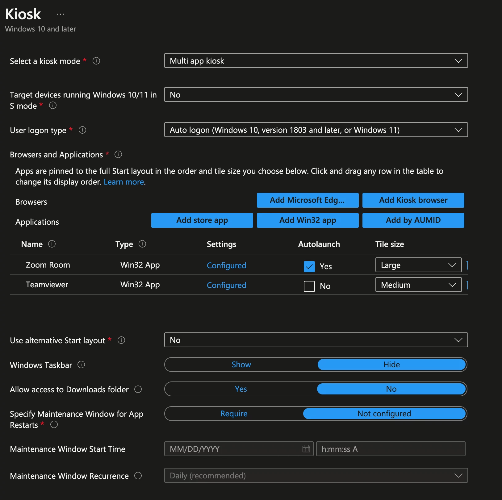 - Kiosk Mode intune Configuration: 22-08-26 at 11.04.39