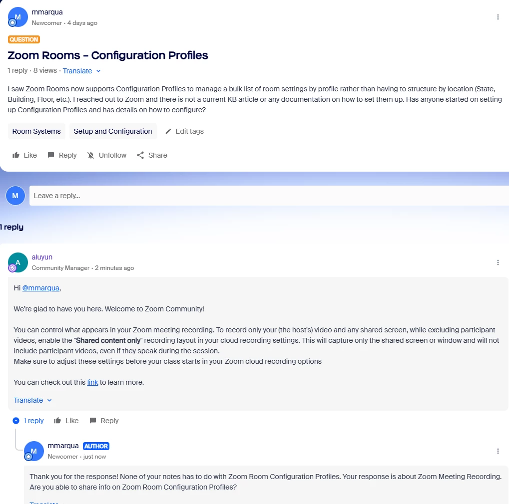I saw Zoom Rooms now supports Configuration Profiles to manage a bulk list of room settings by profile rather than having to structure by location (State, Building, Floor, etc.). I reached out to Zoom and there is not a current KB article or any documentation on how to set them up. Has anyone started on setting up Configuration Profiles and has details on how to configure?