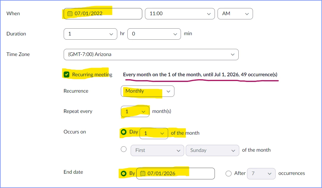 Zoom rooms recurrence limit