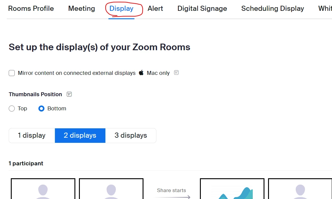 Zoom Rooms with multiple displays (w/ touch) - Set default show content share