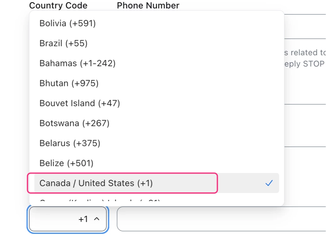 Am I just missing it, or is USA (+1) not selectable when entering a phone number? I have had to use Puerto Rico to get the +1 in front of my number. I might have missed it since there seems to be no order to the countries.