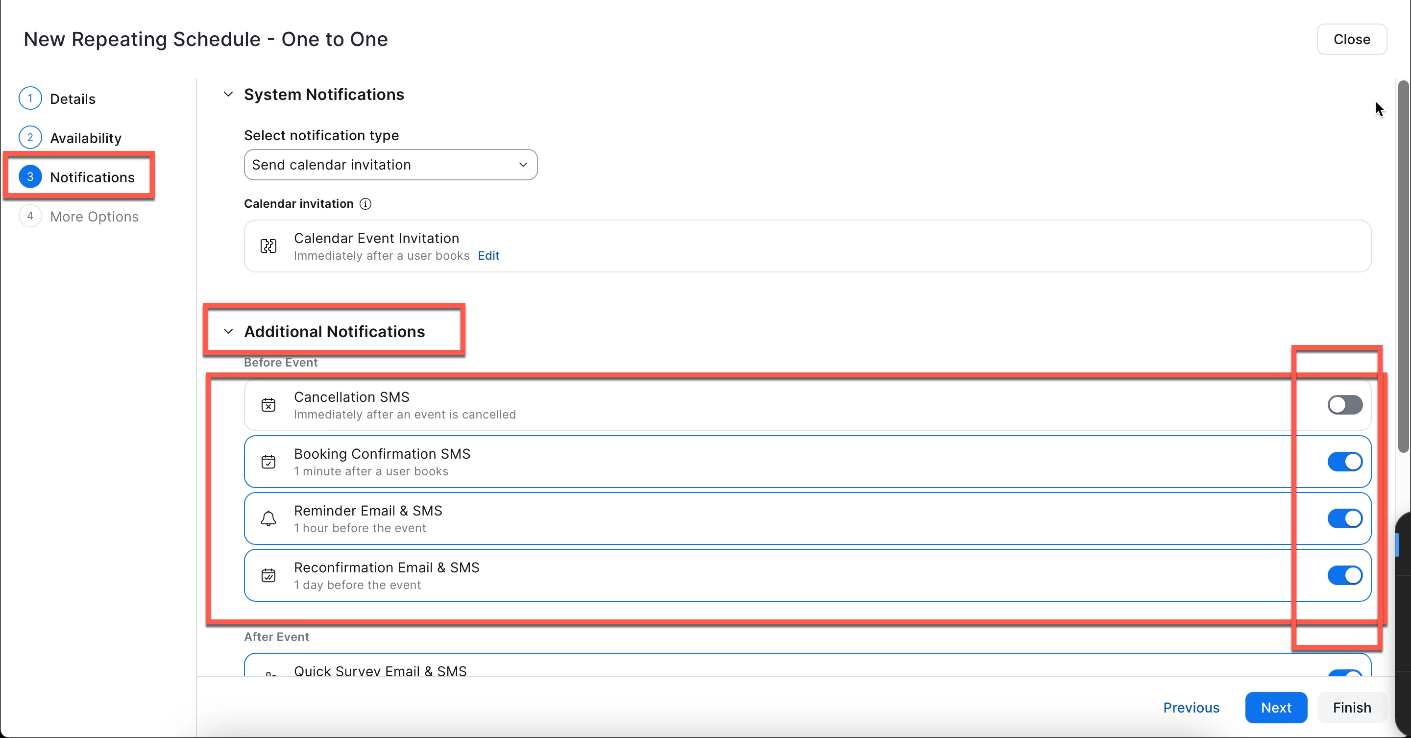 Tried setting notifications to you everywhere but no email or sms works for creating meeting.