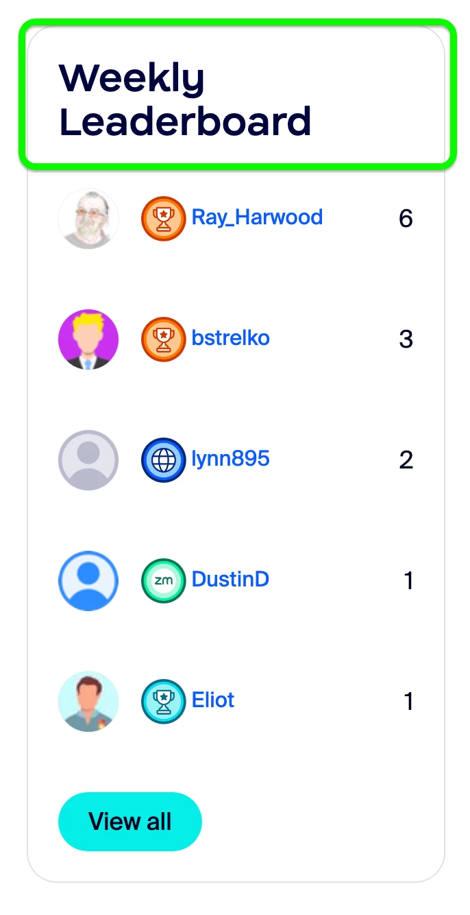 First up, we've updated our leaderboards! Now, instead of just monthly leaders, we're shining the spotlight on our top weekly leaders 🔦. Our new weekly leaderboard showcases those Zoom Community superstar users who have racked up the most accepted solutions each week. This provides community members with more frequent opportunities to be spotlighted on the leaderboard and ignites some friendly competition 😈.