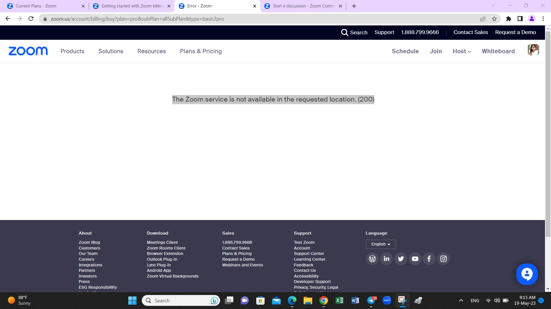 The Zoom service is not available in the requested location. (200)
