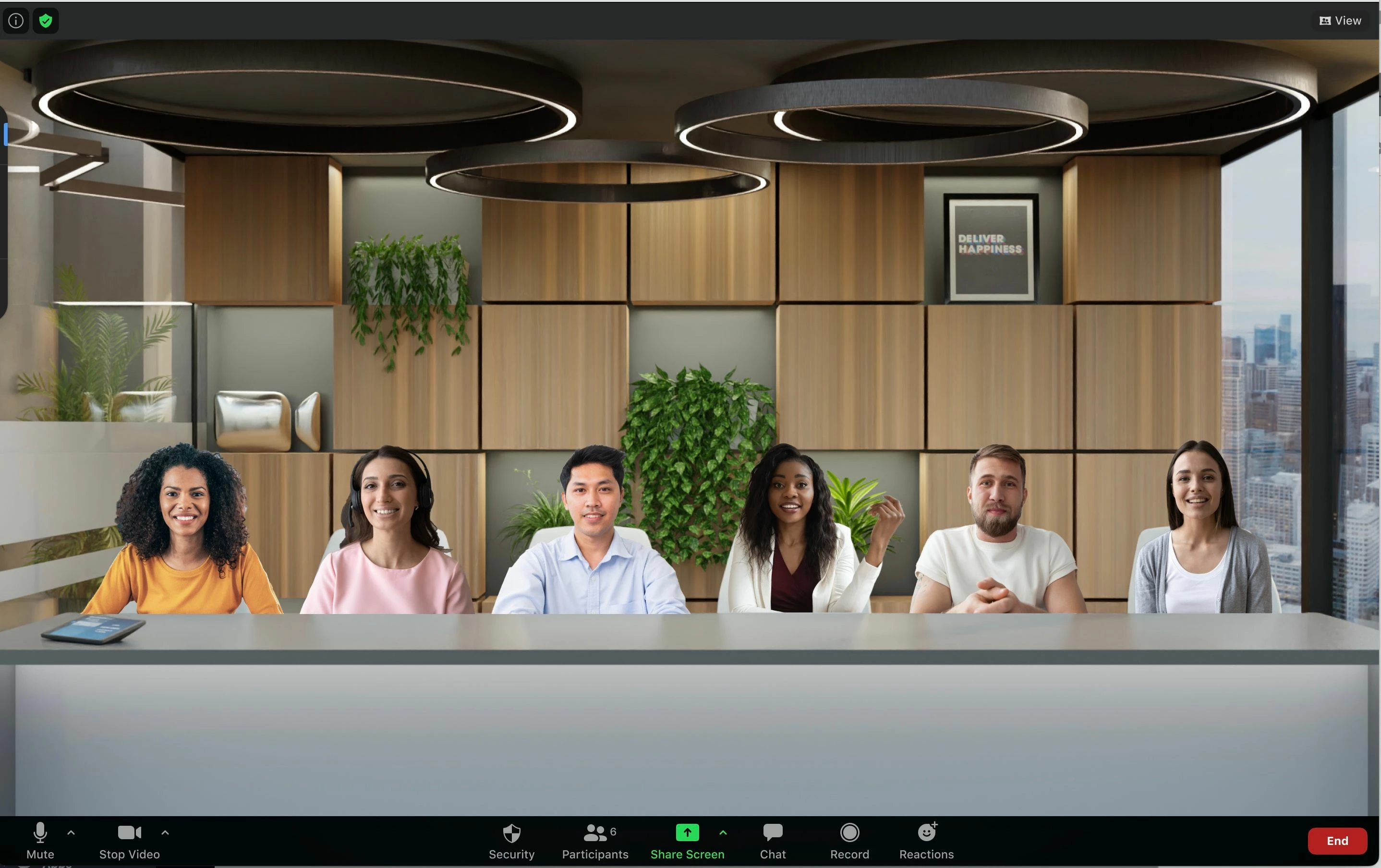 Recreate the feel of your class or conference room by placing up to 25 video participants onto a single virtual background with Immersive View.