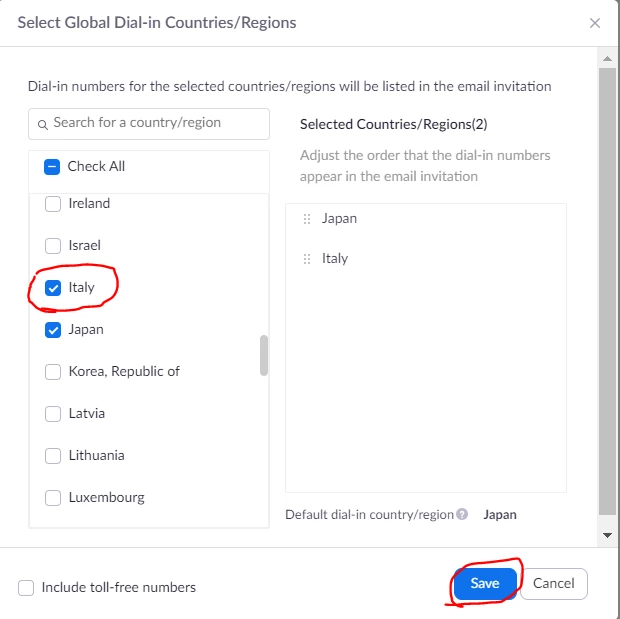 When I generate a link for a Zoom meeting the phone numbers listed are for the UK and various US regions. I want to add Italy as I have people in Italy joining my meetings; how do I add Italy, or any other European country for that matter?