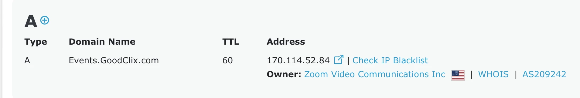 Thanks. I’m a GoDaddy user too, and it did let me put in both CNAME and A records. It’s important to have the CNAME, if possible, since Zoom could change the IP address of the events-branding subdomain. But at the moment, “whatever works.” 😎