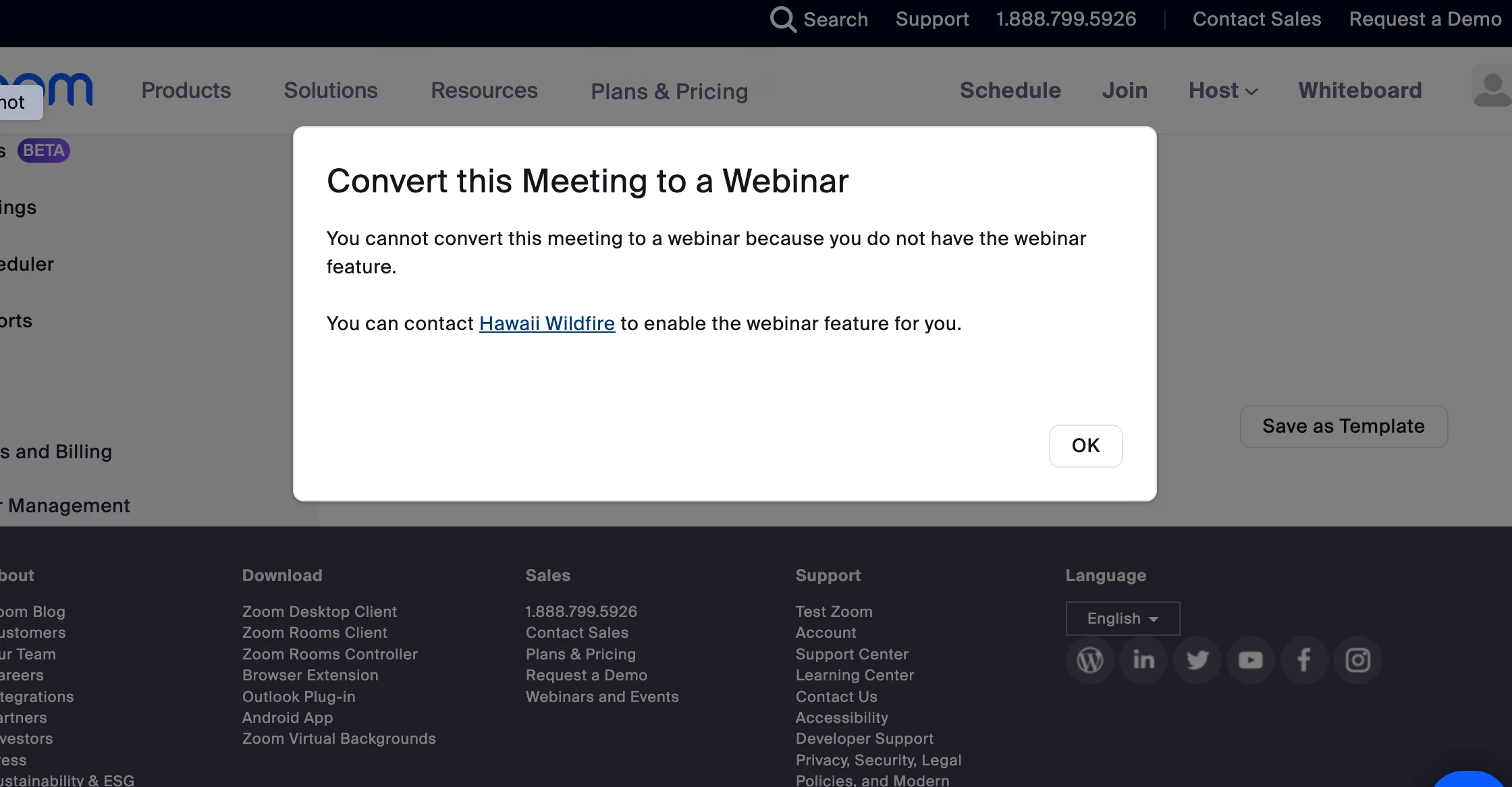 I just purchased a Webinar monthly plan for *********** and I need to convert the meeting to webinar, but I am getting this