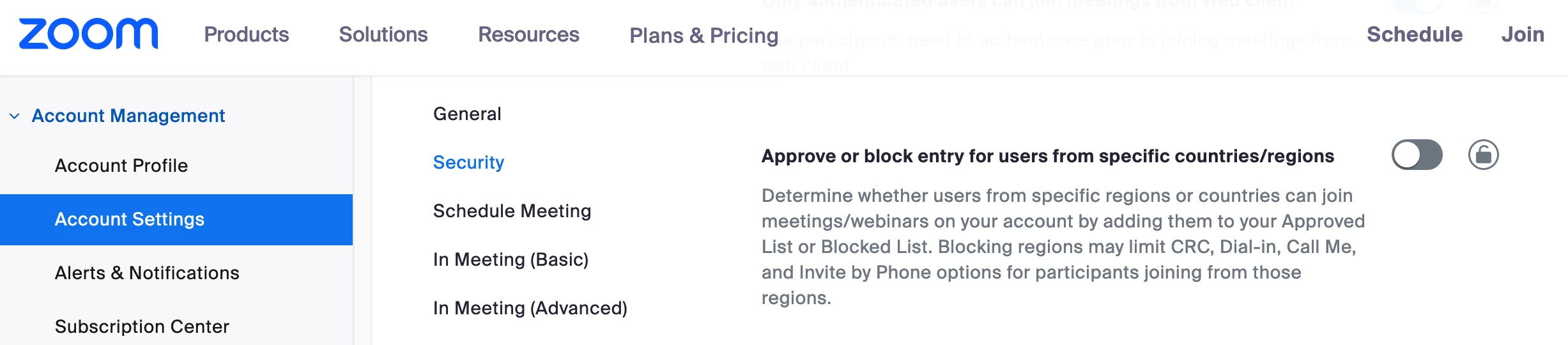 I am trying to edit the "countries approved" setting in my personal meeting ID settings and the "edit" tab is grayed out.