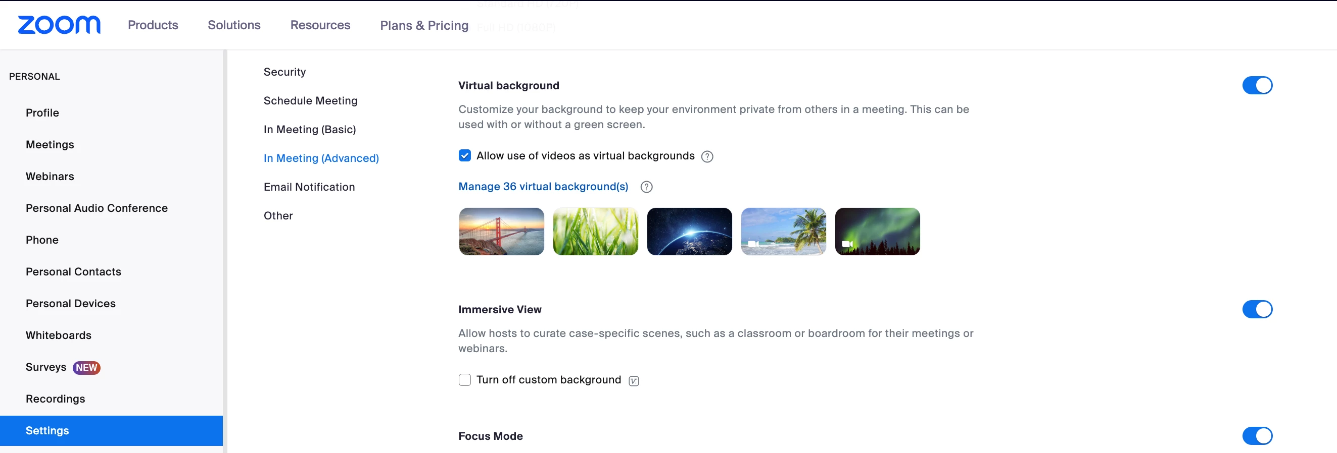 I have a few pictures I use as backgrounds. I want to add a couple more from a recent trip but I don't have a meeting scheduled at the moment. Is there a way to do that from my account or do I have to wait until I am in a meeting and start hunting and uploading the photos then?