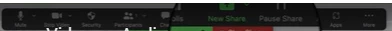 1. When I select "share", to show a presentation, I can no longer see the participants and the menu bar that normally pops up at the top of the screen is not appearing (see below).
