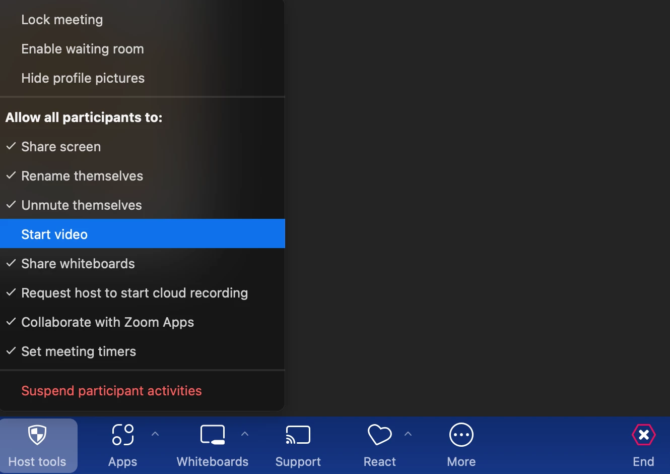 This will prevent any participants from opening their cameras.