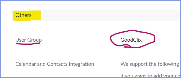 Scroll down to locate the Others menu heading where the User Group item is located: